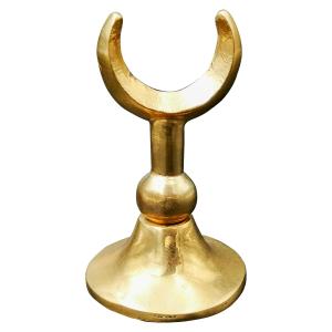 - Pirinç: Obje, bakır ve çinko alaşımından oluşan pirinç malzemeden üretilmiştir. Pirinç, kalıplara eritilerek kum döküm yöntemiyle şekillendirilir. Sonrasında, taşlama, polisaj (fırçalama) ve vernik gibi işlemlerle kullanıma hazır hale getirilir.