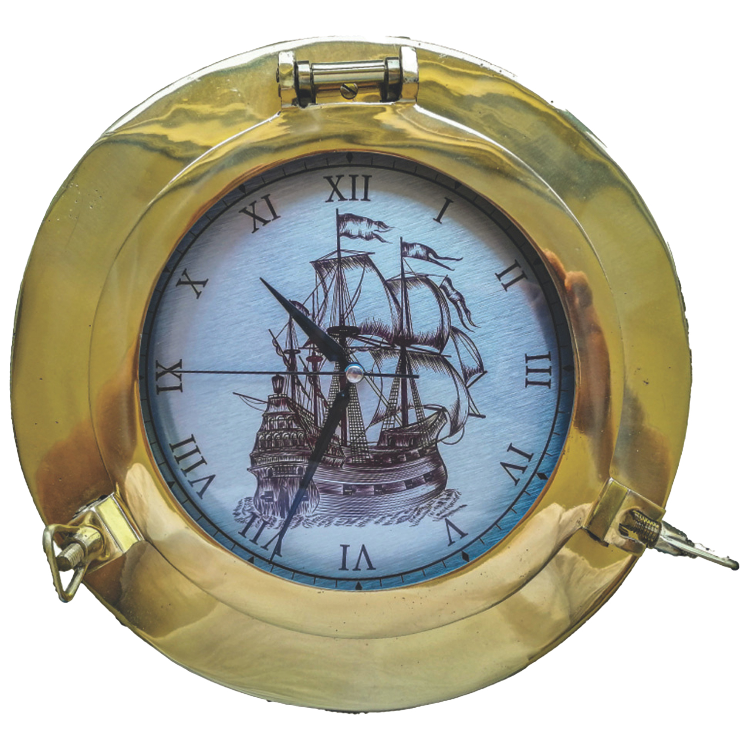 Pirinç Döküm Lumbozlu Yelkenli Motifli Duvar Saati, hem işlevsel hem de dekoratif bir unsur olarak evinize ya da iş yerinize zarif bir dokunuş katacak.