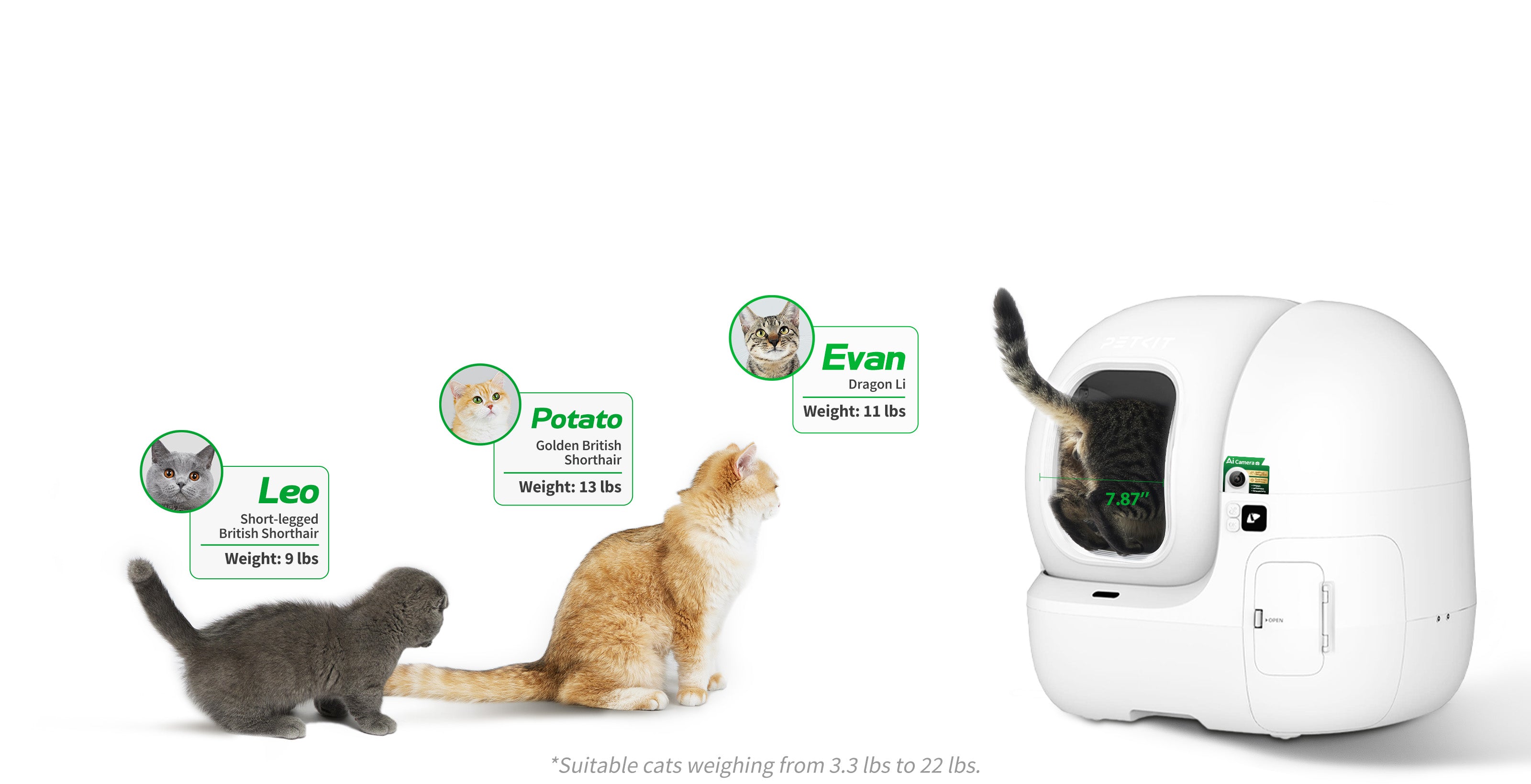 Bu aralık dışında kalan kediler için cihaz uygun performans göstermez.
