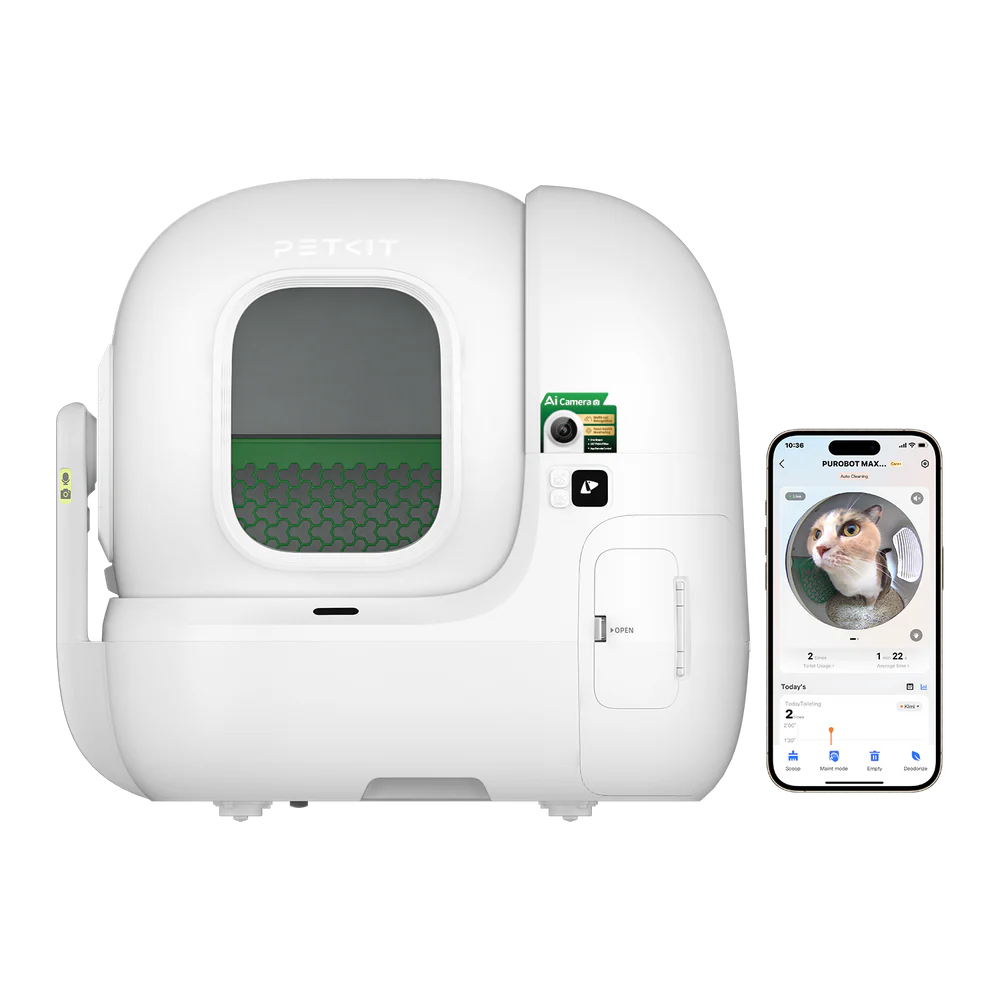Petkit Purobot Max Pro, çığır açan bir otomatik kum kabı çözümü. 210° görüş açılı AI kamera, drawstring (ipli poşet) atık paketleme ve kendini temizleyen silindir sistemiyle konforlu, hijyenik ve sağlık odaklı bir deneyim sunar. 24/7 kullanım takibi ve çok kedi tanıma yeteneğiyle modern evcil kedi bakımında standart belirliyor.